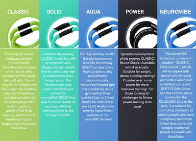 On the Smovey North America website you will see 5 dfferent models. The ones we have used in Somatic Experiencing are the first category (Classic Smovey Rings) and the last category (Neurovibe Smovey RIngs). The Classic Smovey Rings now come in many very nice colors (in addition to the green and turquoise). The NeuroVIBE rings have a slightly more intense vibration and a new damping system which allows for a somewhat smoother, easier swing. The classic rings are fairly similar and not a bad choice at all. However, If you are buying two sets to work with clients, you might consider getting one of each model. With two sets that feel different, it becomes part of the curiosity or intrigue to see which they like better. Peter Levine and I have had several conversations about this and we agree the variety is good, though you can’t go wrong with two of the same!